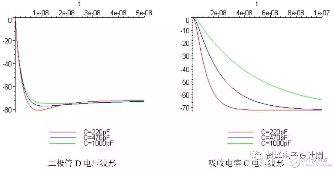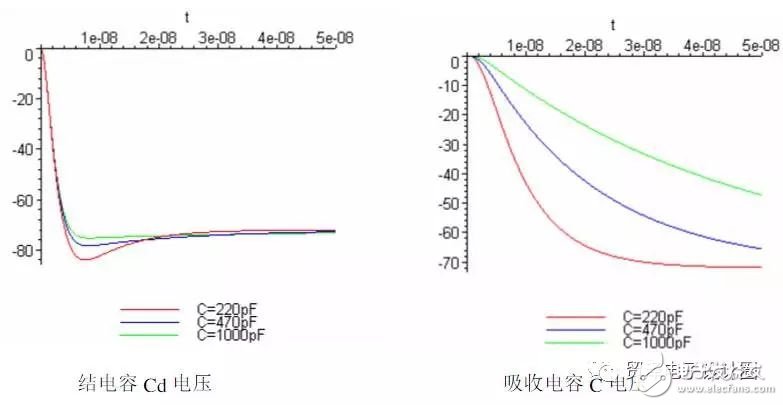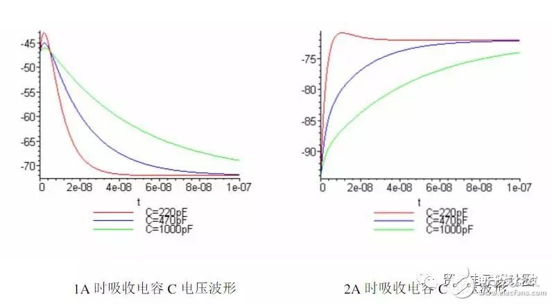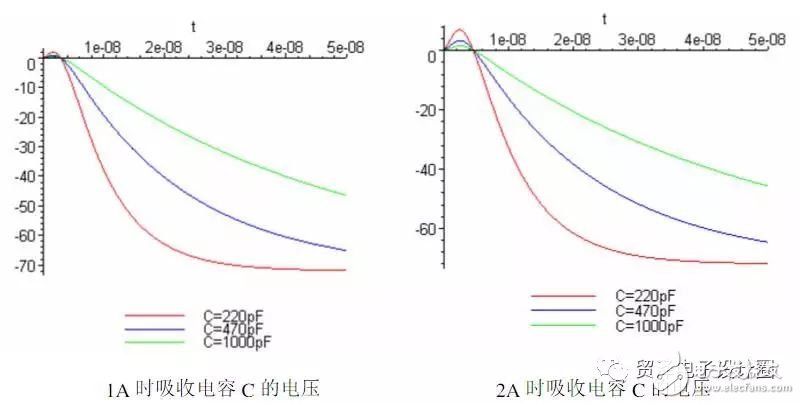 以上是不同的吸收電阻R,考慮不同的吸收電容C: