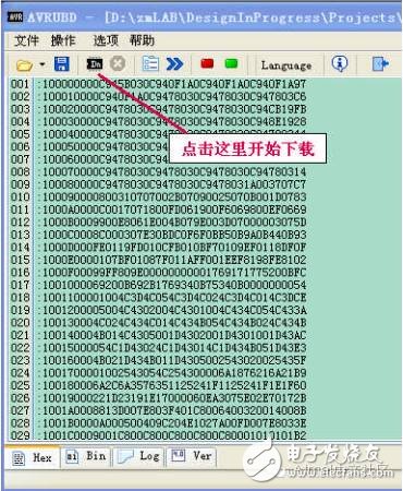 3) 載入要寫到芯片中的 HEX 文件。 這一步是將你要下載到電路板的程序先裝入電腦, 方法是點(diǎn)擊