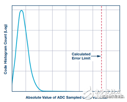 圖6. 利用ADC樣本與理想輸出碼相比較的長期直方圖,我們可以檢測任何超出計(jì)算限值的偏差。該直方圖類似于泊松分布圖。
