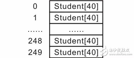 作為信息管理系統(tǒng),首先要能夠存儲(chǔ)學(xué)生記錄,這上萬(wàn)條記錄如何存儲(chǔ)呢?簡(jiǎn)單地,可以使用一段連續(xù)的內(nèi)存存儲(chǔ)學(xué)生記錄,比如,使用一個(gè)大數(shù)組存儲(chǔ),每個(gè)數(shù)組元素都可以存儲(chǔ)一條學(xué)生記錄: