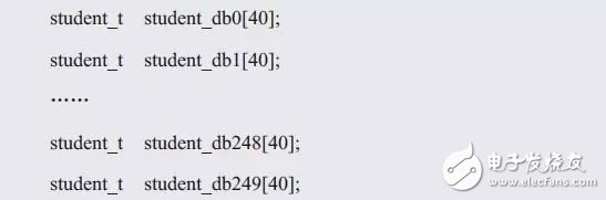 顯然,采用這種定義方式太繁瑣了,由于每個(gè)數(shù)組的大小是相同的,因此可以直接將存儲(chǔ)40個(gè)學(xué)生記錄的數(shù)組定義為一個(gè)類(lèi)型: