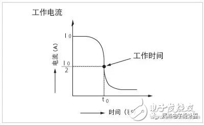 從加載電壓到電流本身陡然衰減之間的時(shí)間稱為“工作時(shí)間”。傳統(tǒng)意義上,工作時(shí)間 (t0) 是指突入電流減小到初始突入電流 (I0) 一半強(qiáng)度 (I0/2) 所需的時(shí)間。