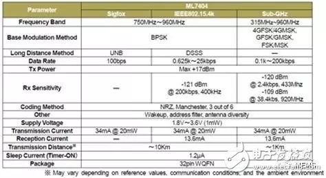產(chǎn)品特征1. 支持Sigfox和IEEE802.15.4k LPWA雙模式ML7404是兼容IEEE802.15.4k和主要在歐洲使用的Sigfox標(biāo)準(zhǔn)的雙模式LPWA無線通信LSI。a) 兼容Sigfox標(biāo)準(zhǔn)Sigfox是一種LPWA無線通信系統(tǒng),目前正在全球30多個(gè)國家/地區(qū)使用。b) 支持IEE802.15.4k標(biāo)準(zhǔn)由IEEE定義的802.15.4k標(biāo)準(zhǔn)的特征在于其基于正交擴(kuò)展碼的DSSS(Direct Sequence Spread Spectrum,直接序列擴(kuò)頻),并且與其它擴(kuò)頻通信方法相比,抗同一系統(tǒng)干擾能力強(qiáng)。此外,它可以在同一個(gè)網(wǎng)絡(luò)容納更多的終端。該協(xié)議使用無需授權(quán)的高可靠性sub-GHz頻帶。