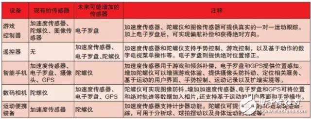 表二:傳感器在消費電子中的應(yīng)用