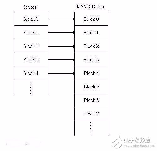 跳過壞塊就是燒錄數(shù)據(jù)時,遇到壞塊即跳過此壞塊,將數(shù)據(jù)順延燒到下一個好塊,這樣可以保證所有的數(shù)據(jù)都能燒寫到NAND存儲空間中,但是并不知道數(shù)據(jù)究竟燒到了哪一位;