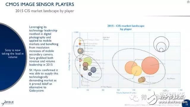 橫軸代表器件出貨量,縱軸代表平均銷售價(jià)格。所以圓形面積也就反映了各個(gè)廠商在2015年的營收情況。