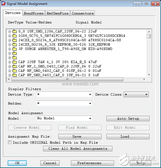 然后點(diǎn)擊需要設(shè)置模型的器件,通常就是串聯(lián)匹配電阻,分配或創(chuàng)建合適的仿真的模型,如果不知道如何創(chuàng)建,請(qǐng)?jiān)诨ヂ?lián)網(wǎng)上搜索或發(fā)郵件給無線時(shí)代(Beamsky)。