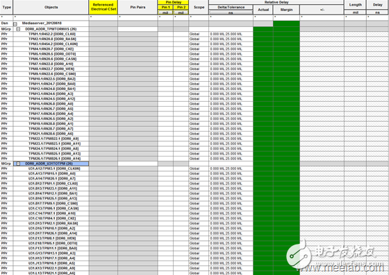 補(bǔ)充一點(diǎn),很多時(shí)候,地址線的等長(zhǎng)要求不嚴(yán)格,這一點(diǎn)我還沒有嘗試過。在本人設(shè)計(jì)的這些產(chǎn)品中,地址線,數(shù)據(jù)線都做了25mil的Relative Propagation Delay的等長(zhǎng)規(guī)則設(shè)定。關(guān)于等長(zhǎng)規(guī)則設(shè)定的細(xì)節(jié)在這里不再贅述,有興趣的話,可以發(fā)郵件給無線時(shí)代(Beamsky)。
