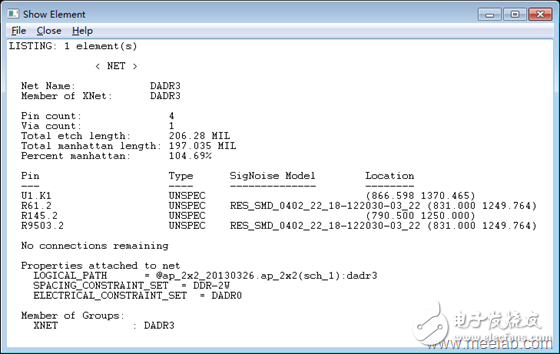 分配好仿真模型之后的網(wǎng)絡(luò),使用Show Element命令,可以看到相關(guān)的XNET屬性,如下圖: