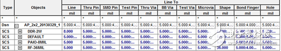 3. 線距部分主要考慮兩方面,一是線-線間距,建議采用2W原則,即線間距是2倍線寬,3W很難滿足;二是線-Shape間距,同樣建議采用2W原則。對(duì)于線間距,也可以在Allegro中建立一種約束條件,為所有DDR走線(XNET)分配這樣的約束條件,如下圖: