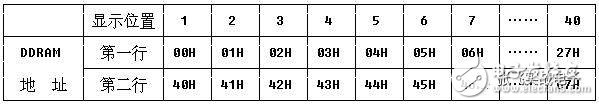 DDRAM 就是顯示數(shù)據(jù)RAM,用來(lái)寄存待顯示的字符代碼。共80 個(gè)字節(jié),其地址和屏幕的對(duì)應(yīng)關(guān)系如下表:
