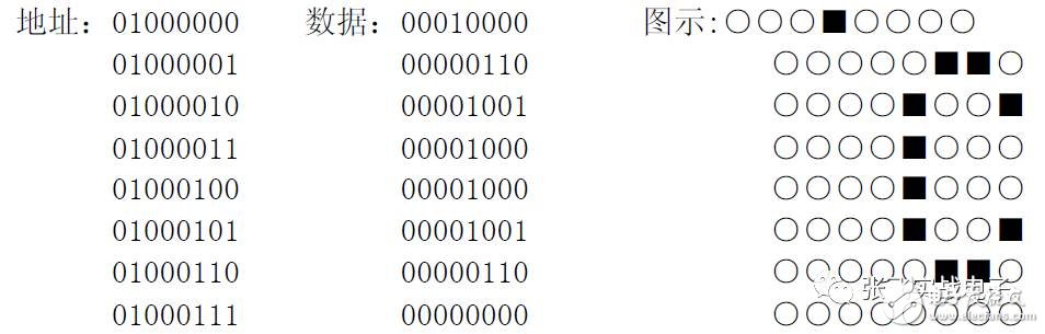 字符代碼0x00~0x0F 為用戶自定義的字符圖形RAM(對(duì)于5X8 點(diǎn)陣的字符,可以存放8 組,5X10 點(diǎn)陣的字符,存放4 組),就是CGRAM 了。后面我會(huì)詳細(xì)說(shuō)的。