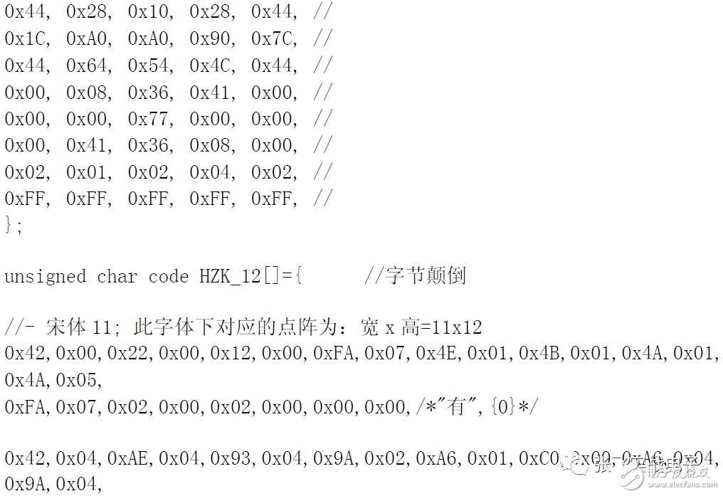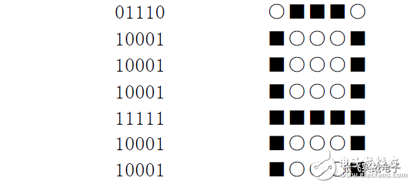 我們知道文本文件中每一個(gè)字符都是用一個(gè)字節(jié)的代碼記錄的。一個(gè)漢字是用兩個(gè)字節(jié)的代碼記錄。在PC 上我們只要打開(kāi)文本文件就能在屏幕上看到對(duì)應(yīng)的字符是因?yàn)樵?a href="http://www.brongaenegriffin.com/v/tag/527/" target="_blank">操作系統(tǒng)里和BIOS 里都固化有字符字模。什么是字模?就代表了是在點(diǎn)陣屏幕上點(diǎn)亮和熄滅的信息數(shù)據(jù)。例如“A”字的字模: