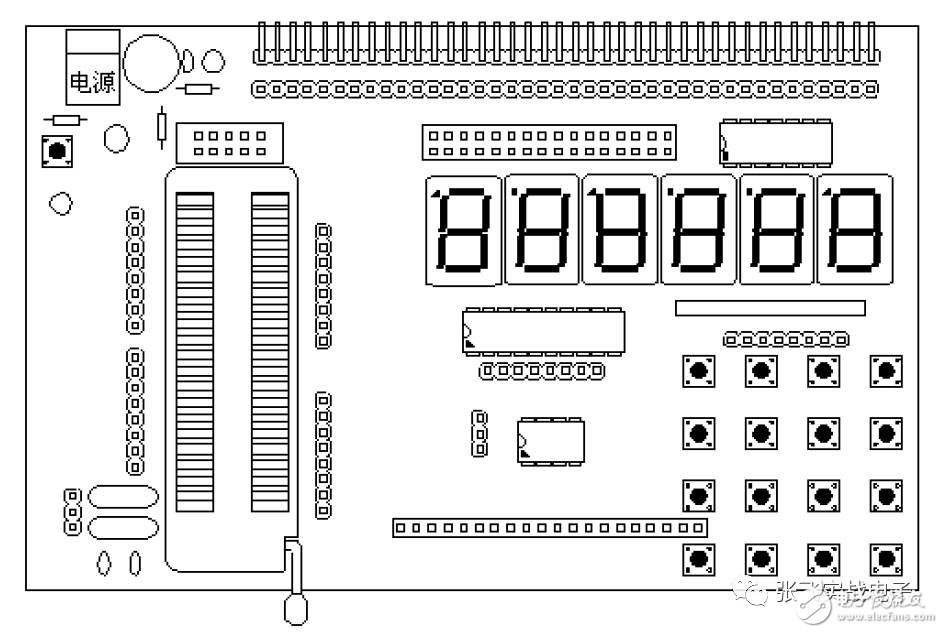 在板上除了最小系統(tǒng)外還有鍵盤輸入、數(shù)碼管、LCD、I2C 存儲(chǔ)器。它們的數(shù)據(jù)接口電源接口也是完全獨(dú)立的。其它的功能都準(zhǔn)備在以后通過(guò)上方的接口另外用板子擴(kuò)展。