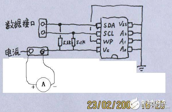 好!下面我們進(jìn)行調(diào)試:插上主電源。但AT24C16 的電源短路帽不接,在短路帽兩個(gè)針之間接上萬(wàn)用表的電流檔檢查是否有短路和靜態(tài)電流的大小。實(shí)測(cè)靜態(tài)電流幾乎為零,改變兩個(gè)數(shù)據(jù)線的電平時(shí),電流會(huì)有所上升,說(shuō)明電路基本正常。