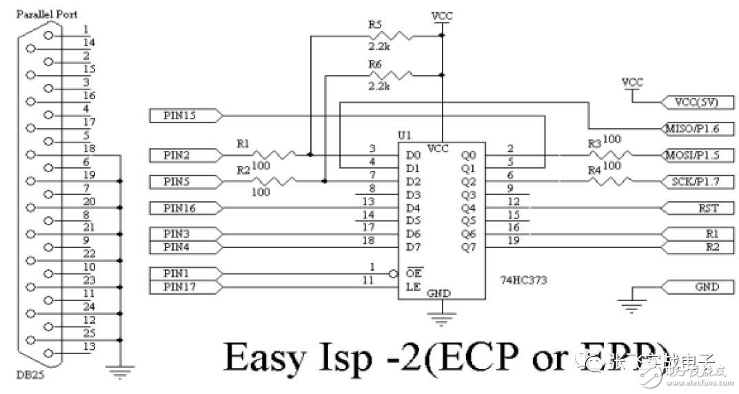 在網(wǎng)上的制做思路幾乎都是把74HC373 放在并口頭的小盒子內(nèi)見(jiàn)下圖: