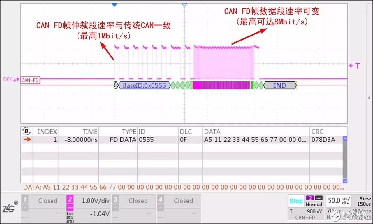 CAN-FDCAN withFlexible Data-Rate的簡(jiǎn)稱(chēng),從名稱(chēng)可以看出,CAN-FD的數(shù)據(jù)速率是可變的。