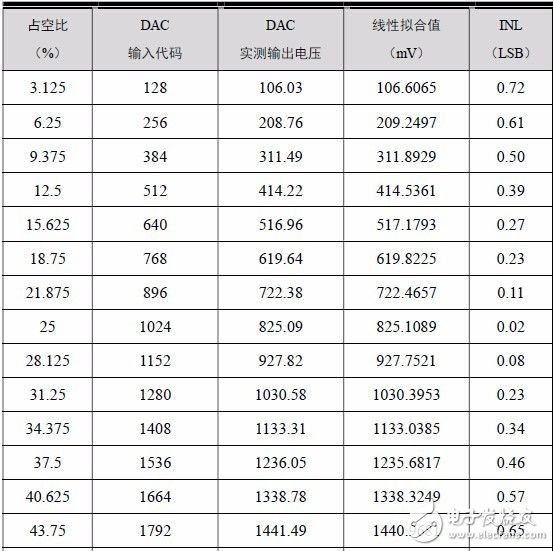 表 3.2 PWM DAC 的INL 測(cè)試數(shù)據(jù)