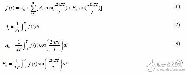根據(jù)傅里葉理論,任意周期波形都可以分解為無(wú)限個(gè)頻率為其整數(shù)倍的諧波之和,周期函數(shù)f(t)的傅里葉級(jí)數(shù)展開(kāi)結(jié)果如下: