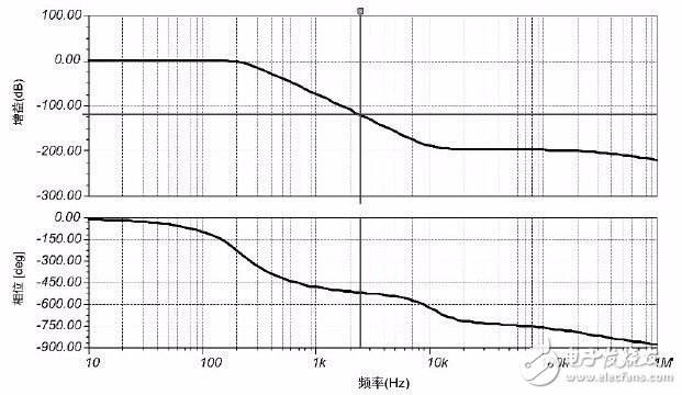 此濾波器電路的幅度曲線詳見(jiàn)圖 3.7,2.44kHz 頻率成分衰減比例為100dB 左右,具有足夠的裕量。如果只需用到10 位分辨率DAC,可只選擇使用第一級(jí)濾波器。