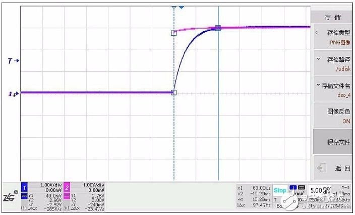 從上圖可以看出,建立時(shí)間ΔX 約為10ms。