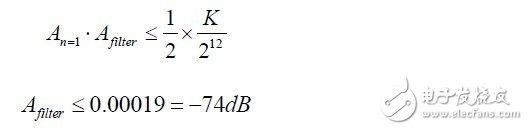 然后,計(jì)算使得基波幅度小于1/2LSB 的衰減倍數(shù)Afilter。
