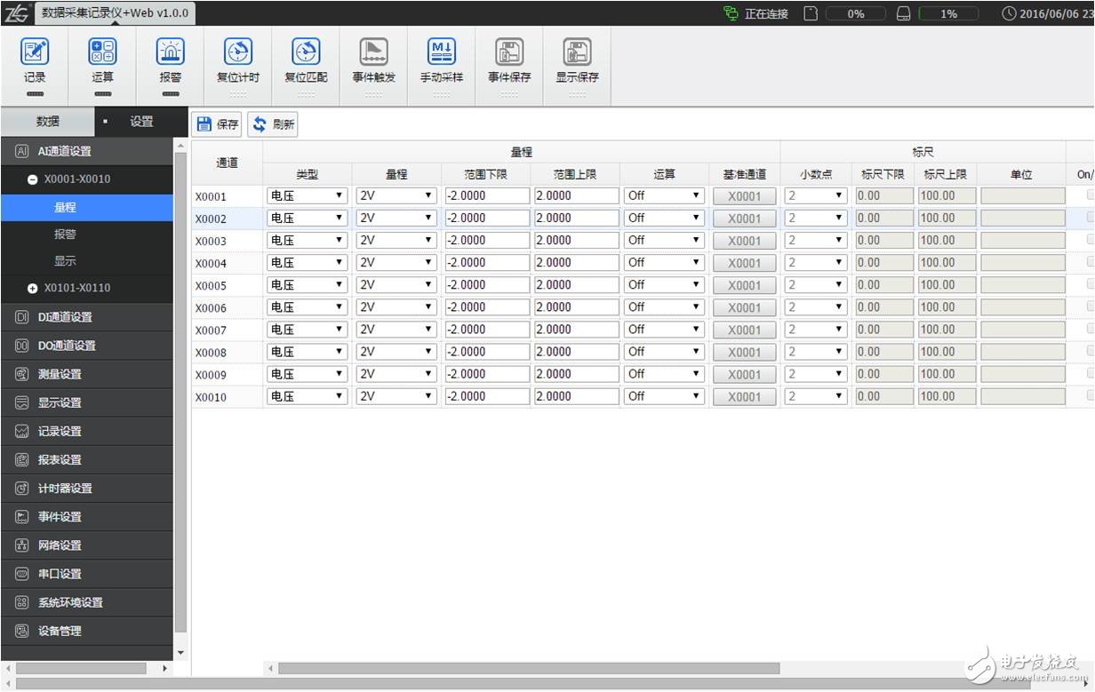 在數(shù)據(jù)采集記錄中,DM100自帶Web服務(wù)器,可以通過網(wǎng)線與PC端連接,打開 Web 瀏覽器,輸入數(shù)據(jù)采集記錄儀主機(jī)的 IP 地址,便可通過Web瀏覽器直接訪問該儀器,進(jìn)入設(shè)定及監(jiān)控界面,快速配置和瀏覽采集數(shù)據(jù)。用戶無需再安裝任何特殊的軟件,易用性強(qiáng)。
