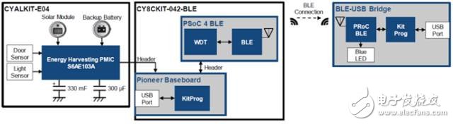 圖10中的框圖顯示了基于S6AE102A和S6AE103APSoC電路板的PSoC 4 BLE的能量采集過(guò)程。