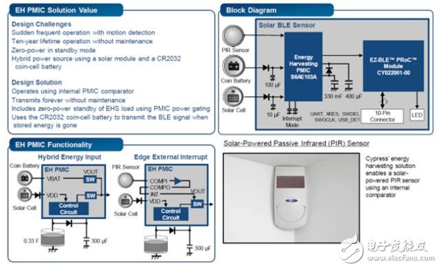 降低功耗技術(shù)的說(shuō)明可參考賽普拉斯CypressCYALKIT-E02太陽(yáng)能供電BLE傳感器參考設(shè)計(jì)套件(RDK)。該RDK包含一個(gè)Cypress PSoC 4 BLE與S6AE10xA能量采集電源管理IC(PMIC)。