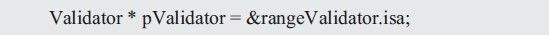 因此可以利用這一特性獲取validateRange()函數(shù)的地址,即pValidator->validate指向validateRange()。其調(diào)用形式如下: