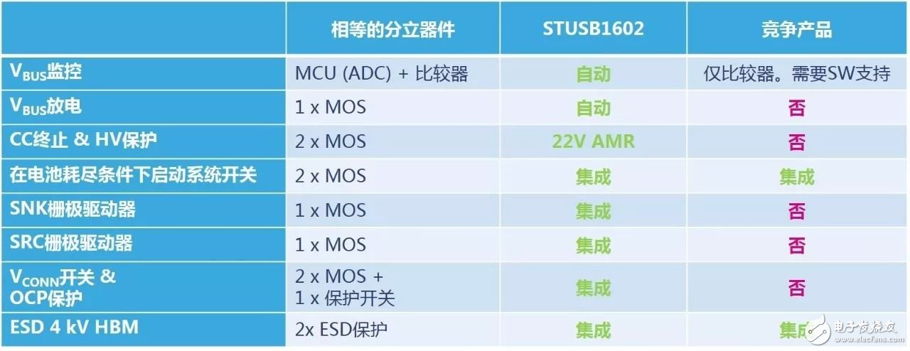 STUSB1602與競爭對(duì)手的比較