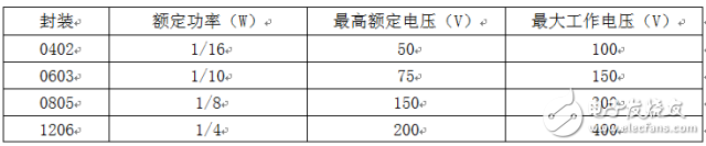 先來看看某廠家四種常用封裝電阻的參數(shù)表。其中表中有兩個值:額定工作電壓和最大工作電壓。