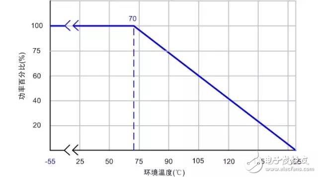 而最大工作電壓是在額定功率下,該電阻可以承受的最大電壓。但是要注意!看下面這個圖。可以看出額定功率是在最高環(huán)境溫度70度的條件下標(biāo)注的(不同廠家,系列可能有微小區(qū)別,在設(shè)計之初和問題查找的時候應(yīng)該核實清楚。)