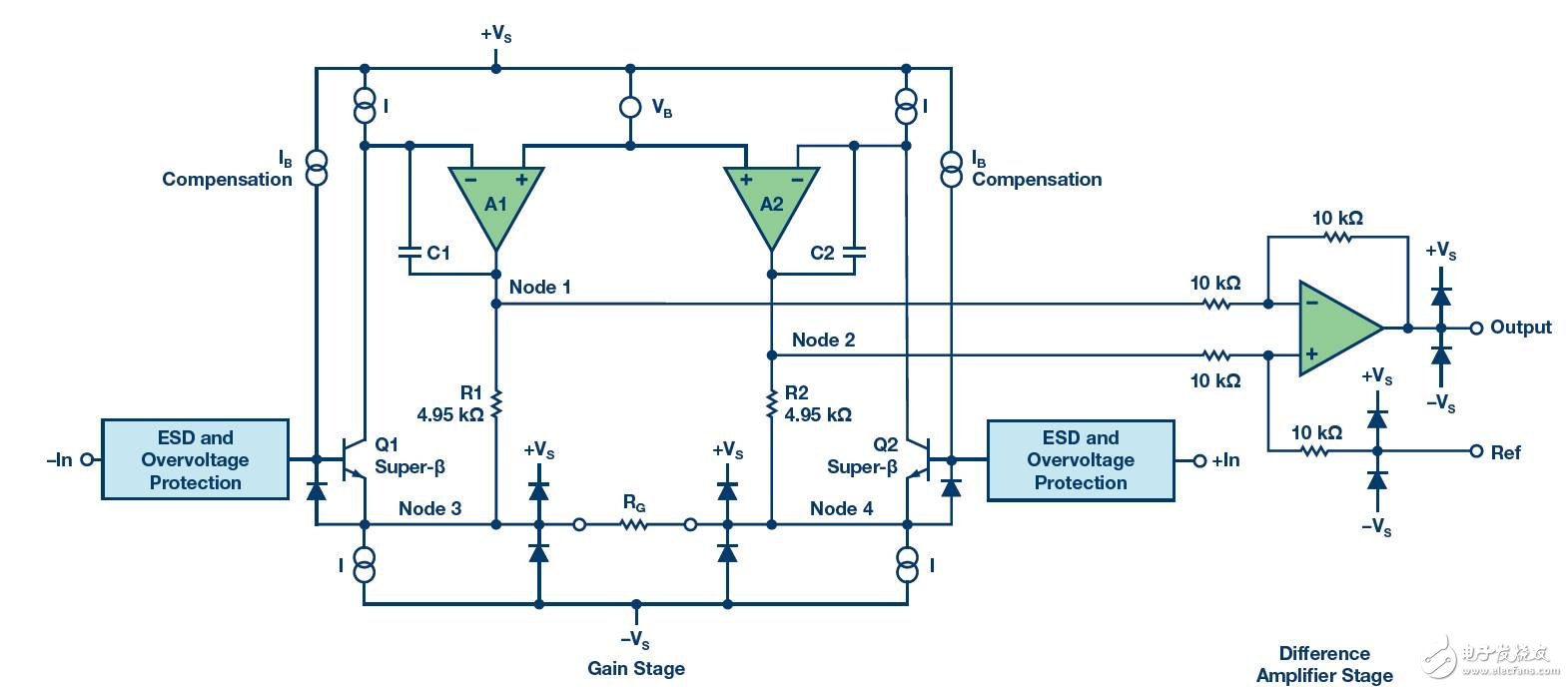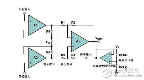 圖1.典型儀表放大器的內(nèi)部架構(gòu)