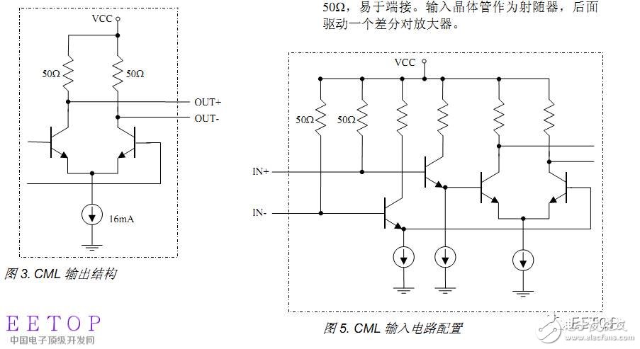 CML即電流模式邏輯電平,采用恒流驅(qū)動,內(nèi)置匹配電阻,使用簡單,短距離高速應(yīng)用中最多。
