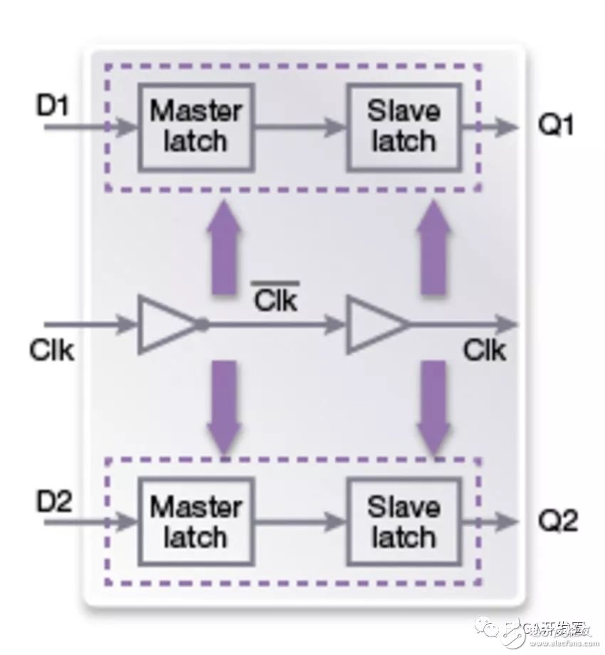 多位觸發(fā)器提供了一組額外的觸發(fā)器,已經(jīng)針對功耗和面積進(jìn)行了優(yōu)化,在性能和布局靈活性方面進(jìn)行了輕微的折中。觸發(fā)器共享一個公共時鐘引腳,這便降低了多位觸發(fā)器單元中N個觸發(fā)器的總時鐘負(fù)載,減少相應(yīng)的漏電功耗,并明顯降低時鐘樹上的動態(tài)功耗(雙重觸發(fā)高達(dá)50%,四重或八重會降低更多)。