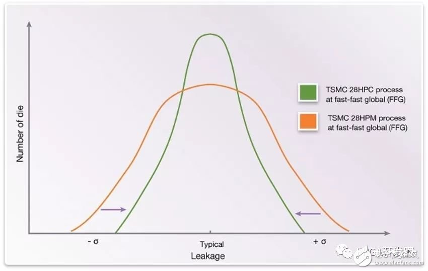 • 其次,臺積電(TSMC)對28HPC工藝進(jìn)行更嚴(yán)格的工藝控制,可以減少對應(yīng)工藝角中的20%漏電來降低功耗。
