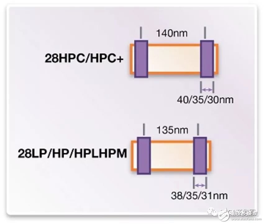 臺積電(TSMC)利用28HPC +改善了28HPM和28HPC上使用的高K金屬工藝,具有新的摻雜特性,并從高K金屬閘上分離了一些原子,提高了15%的性能和降低25%的漏電流。