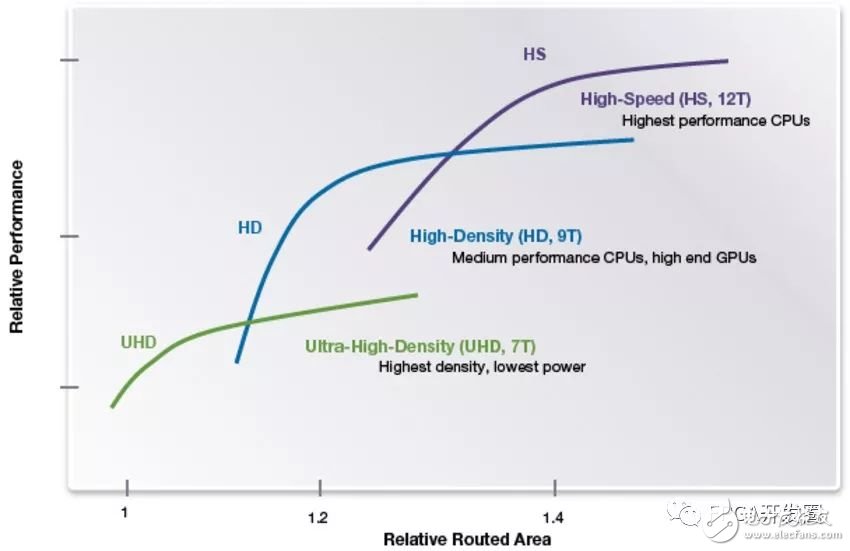 臺積電在28HPC / HPC +工藝中的靈活設(shè)計(jì)規(guī)則和更高的性能,使設(shè)計(jì)人員能夠在邏輯庫中使用更矮的單元格高度,以便在一些能滿足時序要求的block設(shè)計(jì)中,得到更小的芯片面積。使用較矮的邏輯庫和實(shí)現(xiàn)更高速度之間存在一個折中,因?yàn)檩^矮的邏輯庫需要更大的驅(qū)動單元,從而有可能抵消面積節(jié)省。 每個邏輯庫在單元高度和性能之間都具有“最佳點(diǎn)”,以此來提供優(yōu)化結(jié)果 ,但是采用更低高度的單元并不總是最好的辦法。