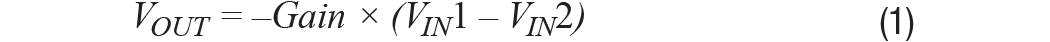 其中,增益= RF/1 k,且 (VIN1 – VIN2) 是差分輸入電壓。