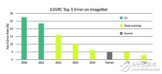 8年的時間里,在ImageNet挑戰(zhàn)賽中,計算機對圖像分類的錯誤率降低了10倍。 圖片來源:dsiac.org