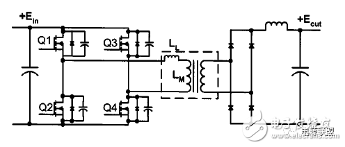 移相PWM 控制技術(shù)是近幾年廣泛應(yīng)用于中大功率全橋變換電路中的一種技術(shù),這種技術(shù)實(shí)際上是諧振技術(shù)與PWM 技術(shù)的結(jié)合,其基本拓?fù)湟?jiàn)圖