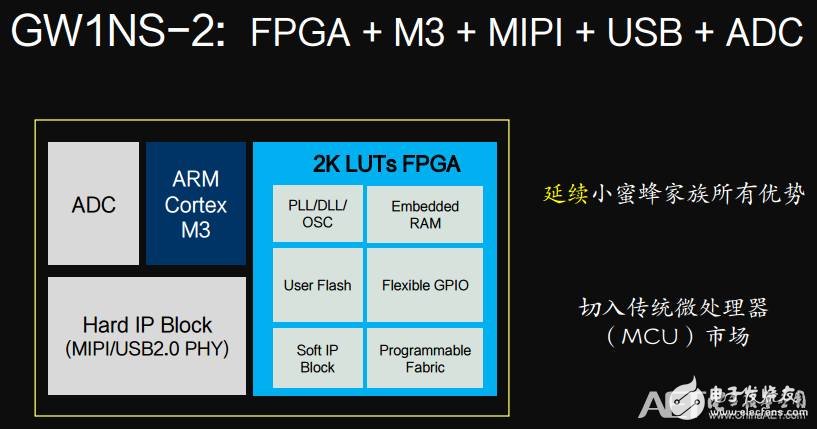 另一個系列產(chǎn)品是以非易失性為特色的小蜜蜂家族,基于業(yè)界領先的55nm嵌入式Flash+SRAM制造工藝,主要面向低密度FPGA市場,具有低功耗、瞬時啟動、低成本、非易失性、高安全性、封裝類型豐富、使用方便靈活等特點。