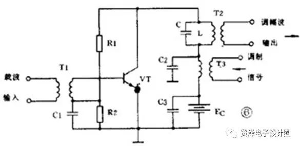 調(diào)幅是一個非線性頻率變換過程,所以它的關(guān)鍵是必須使用二極管、三極管等非線性器件。根據(jù)調(diào)制過程在哪個回路里進行可以把三極管調(diào)幅電路分成集電極調(diào)幅、基極調(diào)幅和發(fā)射極調(diào)幅 3 種。下面舉集電極調(diào)幅電路為例。