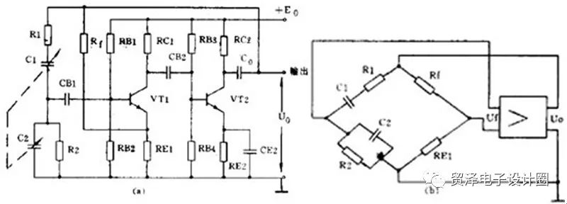 一個振蕩器必須包括三部分:放大器、正反饋電路和選頻網(wǎng)絡(luò)。放大器能對振蕩器輸入端所加的輸入信號予以放大使輸出信號保持恒定的數(shù)值。正反饋電路保證向振蕩器輸入端提供的反饋信號是相位相同的,只有這樣才能使振蕩維持下去。選頻網(wǎng)絡(luò)則只允許某個特定頻率f0能通過,使振蕩器產(chǎn)生單一頻率的輸出。