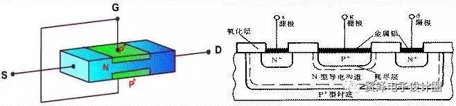 場(chǎng)效應(yīng)分類(lèi):場(chǎng)效應(yīng)管主要有結(jié)型場(chǎng)效應(yīng)管(JFET)和絕緣柵型場(chǎng)效應(yīng)管(IGFET)。絕緣柵型場(chǎng)效應(yīng)管的襯底(B)與源析(S)連在一起,它的三個(gè)極分別為柵極(G)、漏極(D)和源極(S)。晶體管分NPN和PNP管,它的三個(gè)極分別為基極(b)、集電極(c)、發(fā)射極(e)。場(chǎng)效應(yīng)管的G、D、S極與晶體管的b、c、e極有相似的功能。絕緣柵型效應(yīng)管和結(jié)型場(chǎng)效應(yīng)管的區(qū)別在于它們的導(dǎo)電機(jī)構(gòu)和電流控制原理根本不同,結(jié)型管是利用耗盡區(qū)的寬度變化來(lái)改變導(dǎo)電溝道的寬窄以便控制漏極電流,絕緣柵型場(chǎng)效應(yīng)管則是用半導(dǎo)體表面的電場(chǎng)效應(yīng)、電感應(yīng)電荷的多少去改變導(dǎo)電溝道來(lái)控制電流。它們性質(zhì)的差異使結(jié)型場(chǎng)效應(yīng)管往往運(yùn)用在功放輸入級(jí)(前級(jí)),絕緣柵型場(chǎng)效應(yīng)管則用在功放末級(jí)(輸出級(jí))。場(chǎng)效應(yīng)管的工作原理和三極管其本一樣,只是他們一個(gè)是壓控型元件,一個(gè)是電流控制元件,場(chǎng)效應(yīng)管只有一個(gè)PN結(jié),如圖所示1-1