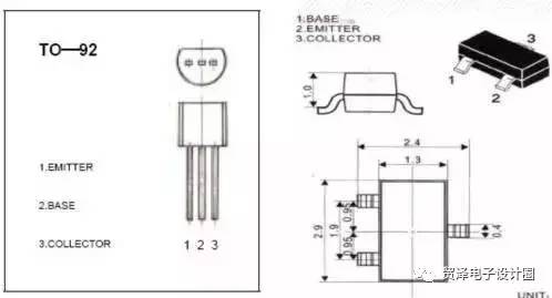 三極管引腳極性:插件引腳圖示(1),貼件引腳圖示(2)下圖為9014。般中小功率的三極管都是遵守左向右依次為ebc(條件是中小功率塑料三極管按圖使其平面朝向自己,三個(gè)引腳朝下放置,則從左到右依次為ebc)