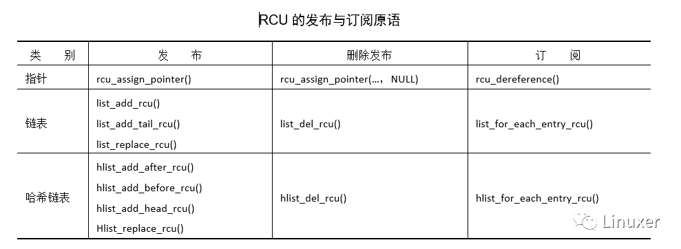 list_add_rcu()原語(yǔ)向指定的鏈表發(fā)布了一項(xiàng)條目,保證對(duì)應(yīng)的list_for_each_ entry_rcu()可以訂閱到同一項(xiàng)條目。
