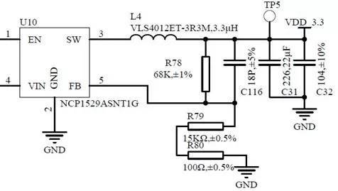 圖3黃色圈注區(qū)域(R80,C116,R79,R78)是系統(tǒng)主電源3.3V DC-DC的負(fù)反饋及補(bǔ)償網(wǎng)絡(luò)(FB部分),如圖4所示。
