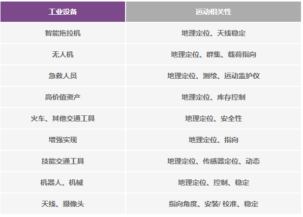 多數(shù)情況下,物聯(lián)網(wǎng)都處于運(yùn)動(dòng)狀態(tài)。即使不處于運(yùn)動(dòng)狀態(tài)——比如,靜止的工業(yè)安全攝像頭——精密指向仍可能必不可少,或者,關(guān)于無(wú)用運(yùn)動(dòng)(篡改)的知識(shí)也可能非常有價(jià)值。如果能在惡劣的飛行條件下維持精確的指向角度,用光學(xué)載荷捕捉作物圖像的無(wú)人機(jī)就有可能更快地帶來(lái)更好的結(jié)果;如果能為光學(xué)數(shù)據(jù)提供準(zhǔn)確的地理測(cè)繪信息,則有可能實(shí)現(xiàn)對(duì)數(shù)據(jù)和趨勢(shì)的歷史比較。智能交通工具,無(wú)論是地面交通工具,還是空中或海上交通工具,它們都越來(lái)越依賴(lài)GPS導(dǎo)航。然而,GPS遭受的精度壓力也越來(lái)越大,無(wú)論是有意為之,還是自然使然(建筑物、樹(shù)木、隧道等)。如果選擇時(shí)考慮了精度需求,則額外的傳感器仍然可以在事故中斷期間可靠地進(jìn)行航向角推算。表2列出了使IoMT(運(yùn)動(dòng)物聯(lián)網(wǎng))中的M(運(yùn)動(dòng))概念名符其實(shí)的一些因素,注意運(yùn)動(dòng)與通用應(yīng)用之間的關(guān)系。